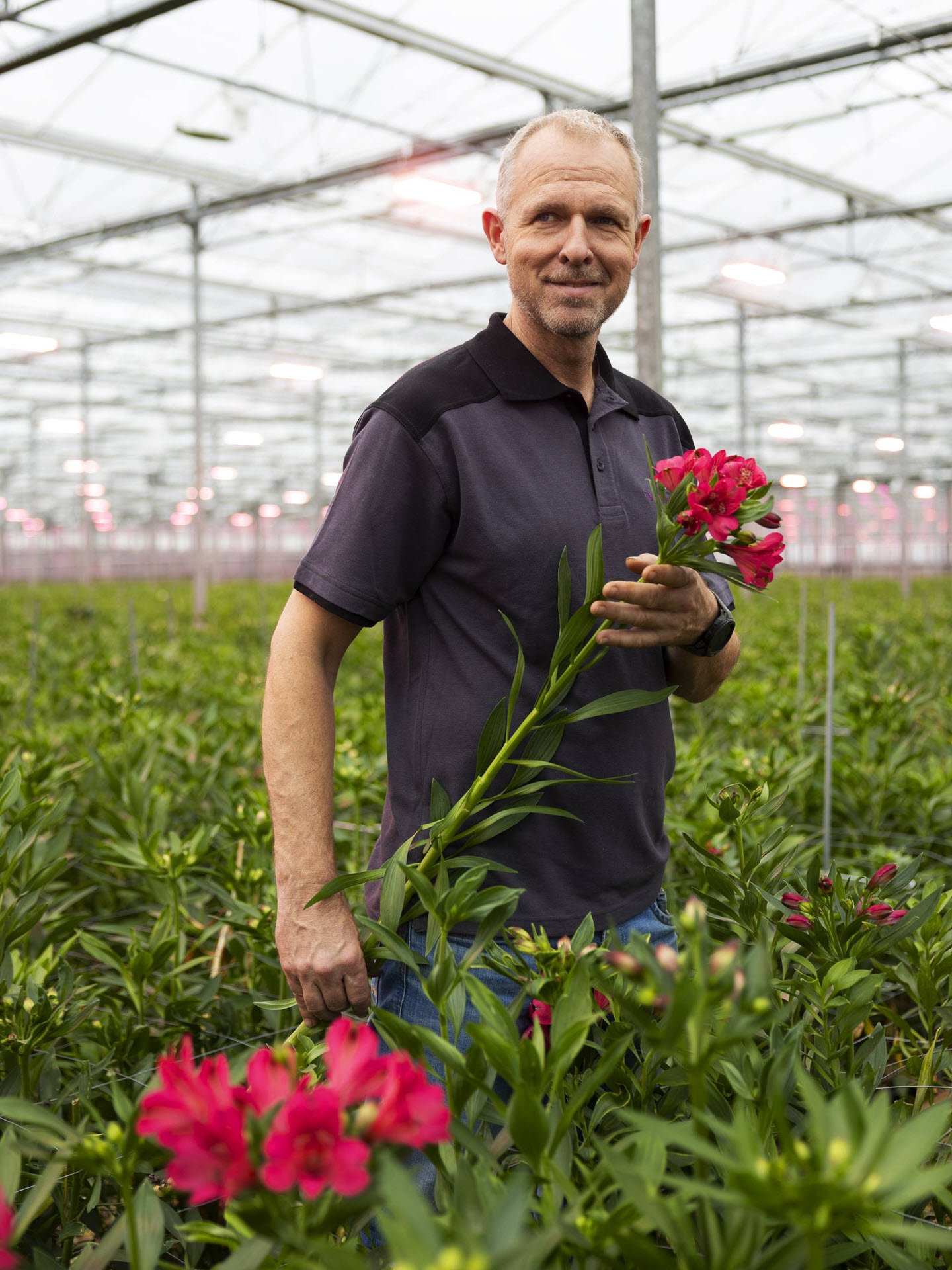 En het mooie is: de CO₂ die de Alstroemeria’s van Together2Grow ‘inademen’, is afkomstig van de Rotterdamse haven. In plaats van dat alle uitstoot van CO₂ de lucht in gaat, wordt deze deels opgevangen, gezuiverd en via pijpleidingen en slangen met minuscule gaatjes de kas van de kwekerij ingebracht. Zo draagt Together2Grow bij aan een schonere lucht.