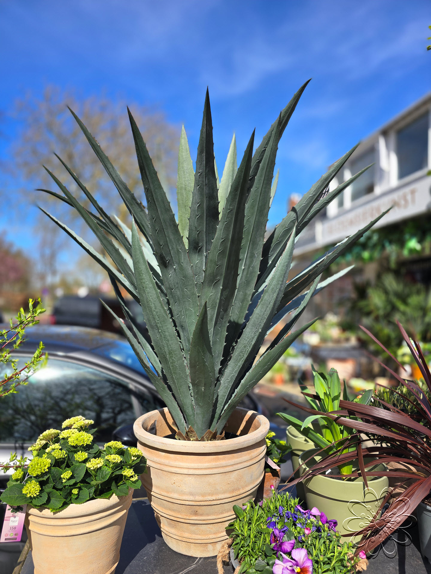 Dankzij de UV‑bestendige afwerking is deze kunstagave zeer geschikt voor zowel binnen- als buitengebruik (in serre of onder overkapping). De kleuren blijven langdurig mooi, zelfs bij plaatsing in direct zonlicht. De plant staat in een stevige pot, waardoor hij direct neer te zetten is en eenvoudig te combineren met een sierpot naar keuze.