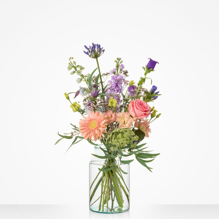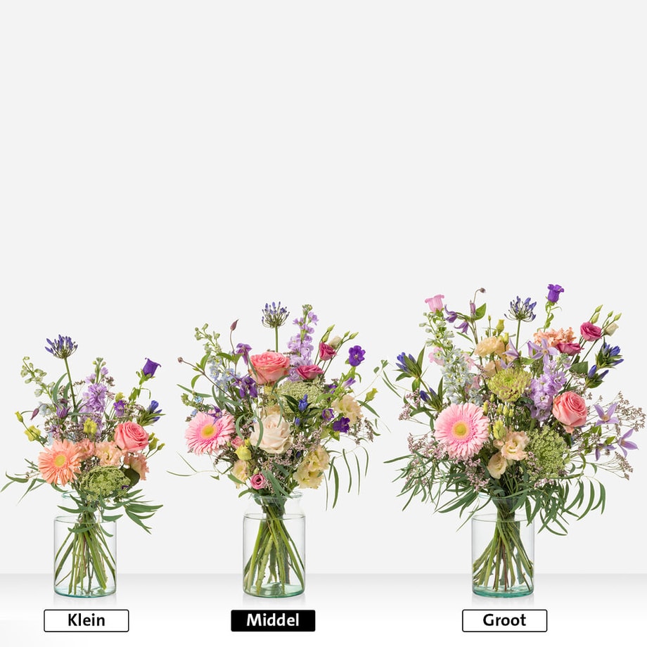 Geboorte bloemen als een hartverwarmend cadeau voor de kersverse ouders. Dankzij de zachte tinten en zorgvuldig geselecteerde seizoensbloemen is dit boeket de perfecte manier om een klein wondertje te verwelkomen. Maak de verrassing compleet met onze lieve en zachte knuffeltjes. Het boeket wordt samengesteld met de Roos, Violier, Delphinium, Campanula, Clematis. Excl. knuffel en vaas.