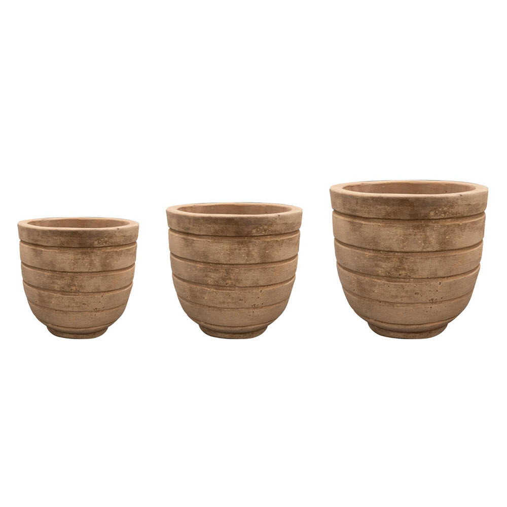 Deze – set van 3 stuks Old terra pot Quintus linne – is gemaakt van terracotta. Deze set is verkrijgbaar in diverse uitvoeringen. Deze set bestaat uit drie bloempotten van hoog 18, 26, 34 cm en met respectievelijk een diameter van 21, 28 en 38 centimeter. Gebruik een potmaat die kleiner uitvalt. De set van 3 stuks pot Quintus Linne bestaat uit: