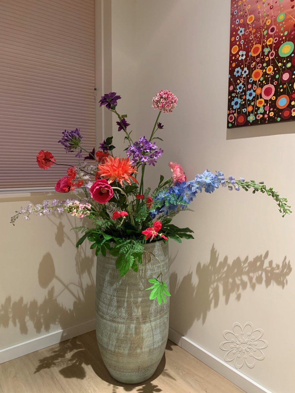 Neem je favoriete vaas mee. In onderling overleg stellen we het boeket kunstbloemen samen.